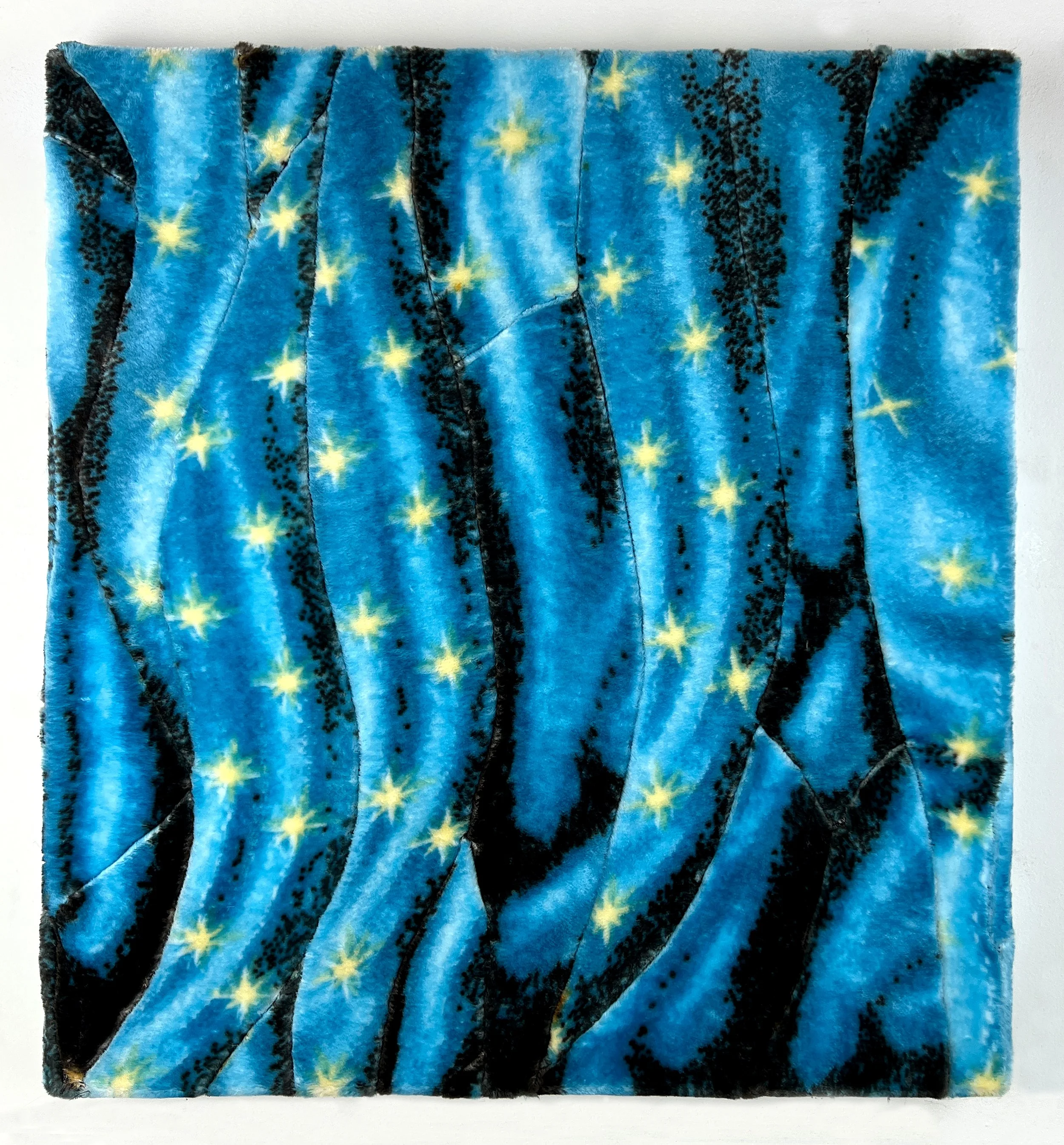 Antonio Lechuga, Our Lady’s, 2024, Various fleece blankets, thread. 26 x 24 inches.