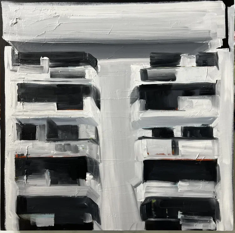 Marian Ichaso Lefeld's paintings navigate the charged space between physical geography and political history — specifically, the Venezuela that modernism built and oil wealth transformed. Her work traces the midcentury architecture that rose simultaneously across Caracas and American cities, a shared utopian language now spoken differently on each side: thriving in one, fractured in the other. Working across oil paint, printmaking, and installation, her work has been exhibited at the Latino Cultural Center in Dallas, Southern Methodist University, the Wright Gallery at the Langford School of Architecture at Texas A&M, and in Caracas, Venezuela. She is a Fulbright-Hays scholar and completed a four-month residency at the Taller de Artistas Gráficos Asociados (TAGA) in Caracas.