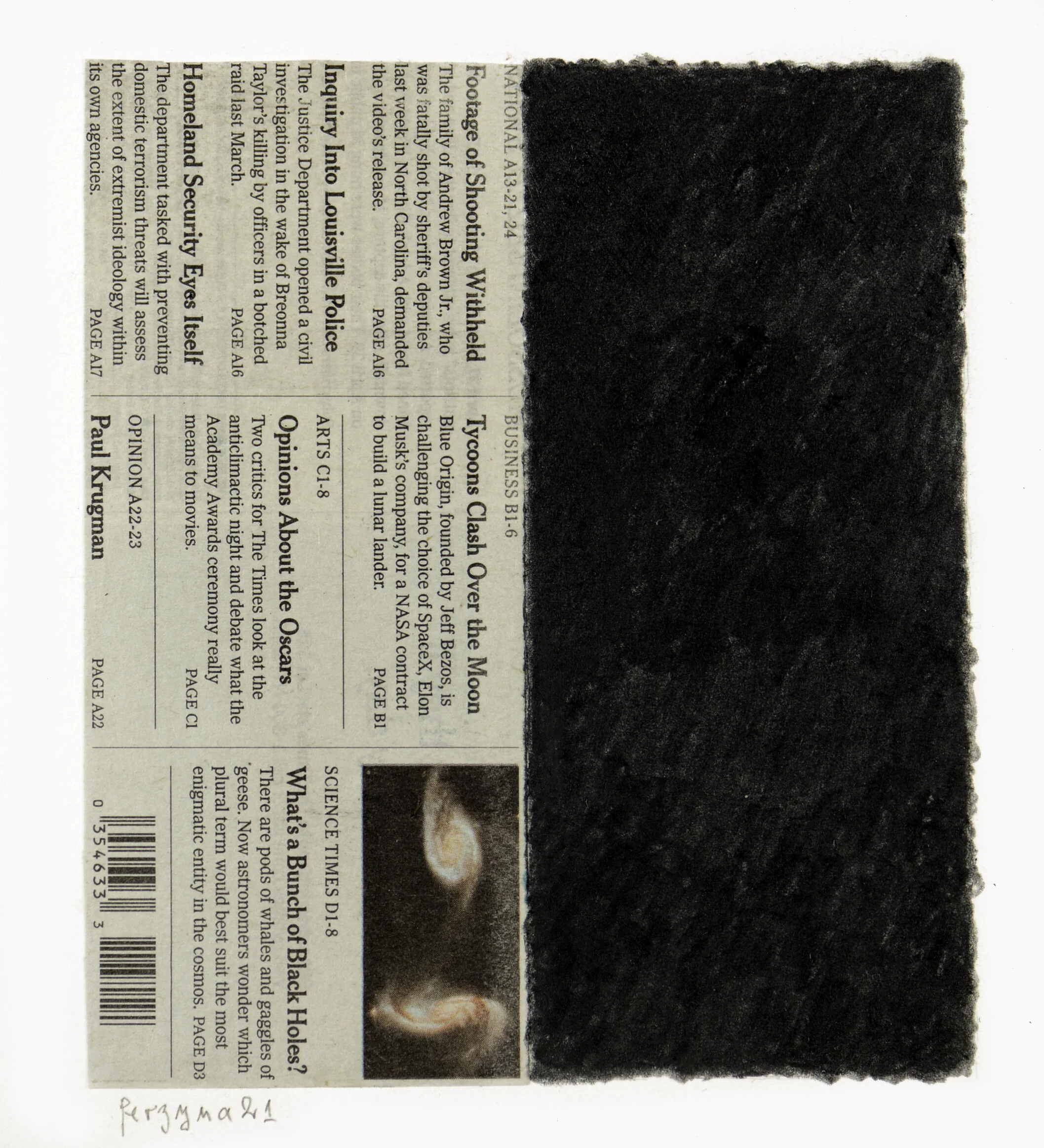 Surface Drawing #2, 2021, 16” x 12”, newsprint, graphite on paper