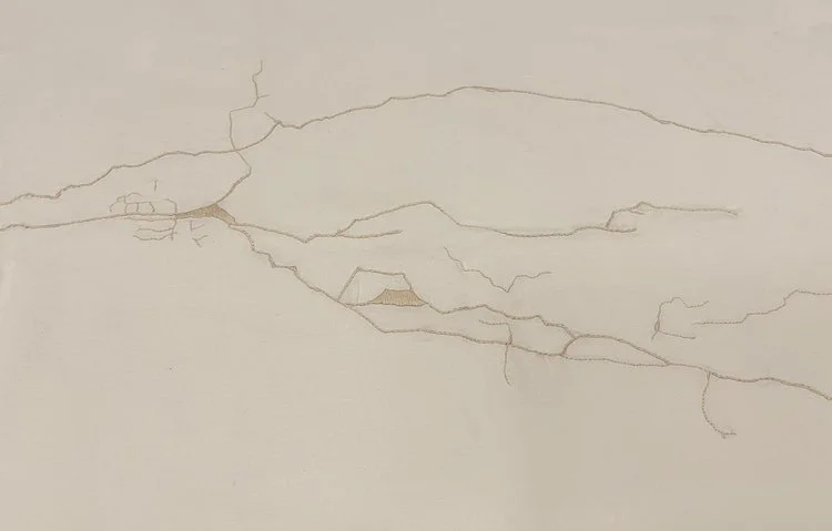 Liliana Bloch Gallery presents Sutura, a new body of work by Salvadoran artist Abigail Reyes. Comprising four works, the exhibition offers a poetic reflection on healing, memory, and the fractured nature of both the human body and built environments. Created during a period of illness, Sutura parallels the artist’s own process of physical recovery with the cracks and tremors of her home in El Salvador, where the region’s telluric movements mirror emotional and bodily fragility. Through visible mending and layered materials, Reyes transforms damage into resilience—her stitches serving not to conceal, but to illuminate repair as an act of strength.